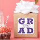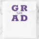GRAD in bold purple letters fill the corners of these grad square stickers. Congratulations above the name of your graduate and the Class of below. SEE ENTIRE COLLECTION of pre-done colour combinations, invitations, paper plates, napkins, signs and more in our store.