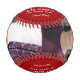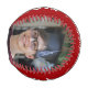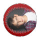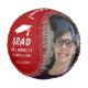 Congratulations Grad Red Graduation Cap 2 Photo Baseball. White typography on red, graduate cap and 2 photos. Add your photos, graduate name, school name and year. You can change any text on the baseball. This custom and personalised baseball is a perfect gift and sweet keepsake for a graduate.