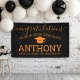Celebrate the graduate with a custom banner. Personalise the banner and hang it up to make an eye-catching graduation party decor. You can also hang it at home or at an event. Make sure to change any colours and other design elements in the advanced design area.