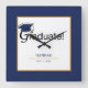 Congratulations Graduate, Hat, Tassel, Blue, Gold Square Wall Clock