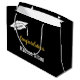 A grad cap is above the custom text for the graduate's name in white text on a black gift bag. The faux gold text says 'Congratulations'. You can customise the class of year that's in black text on the grad's cap.