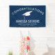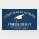 Modern graduation banner featuring bold white lettering with an Navy background. The design features a white graduation cap with the phrase "Congratulations ". Personalise navy graduation banner by adding the graduate's name, school name, and graduation year. For a more custom look, change the background to your school colours. The graduation poster is perfect to use for your high school or college graduation party!