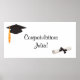 Black and white graduation cap and diploma graduation party banner. Size shown is 24x12.