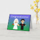 The bride looks fine, but the groom seems a little worried in this wedding card. Congratulations…I think!