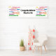 This banner has a design reads Congratulations in many different languages in pink, yellow, green, blue and purple. French, Spanish and German are just some examples! The black text in the centre can be personalised to fit your needs!