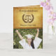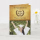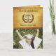 Photo of your favourite graduate with a congratulations in old fashioned font and a scale of justice with brown laurel leave wreath. Background is a parchment paper colour of brown, cream and yellowish gold. Great greeting card for the Law School Graduate.