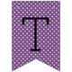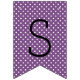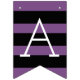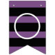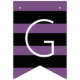 Stylish graduation party bunting banner features "Congratulations!" with grad cap, stripe, and polka dot pattern details. Black, white, and purple (can be customized to match school colors) color scheme.