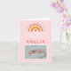 A super cute and cheerful pink design to celebrate new babies in the world! A gorgeous little rainbow with a heart at it's centre at the top in modern pinks,mustard and browns. Add your own photo and baby name to personalise.