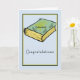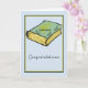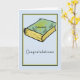 This design has a copy of a book on the front of the card with a pale blue background. The book is green and yellow and has a few designs on the cover.
