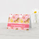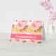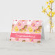 Give your congratulations to the new parents of the baby girl with this cute greeting card. It comes with baby girl elements like toy rocking horse, a rubber ducky, a baby creeper one piece with heart, a milk bottle and a rattle with hearts, all arranged in a pattern. The adorable and sweet pink hues are perfect for a baby girl. Personalise easily with your greeting message.