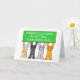 Four cartoon cats holding up a lime green coloured banner which says 'Congratulations on getting your green card'.