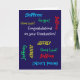 What a wonderful, fun Graduation greeting card!. On the cover, your text repeats in different fonts and colours on a dark blue background. It's easy to modify NAME and TEXT on front; also easy to modify inside text. Can change to JUMBO size, if you wish. All Rights Reserved © 2015 Marcia Socolik.