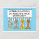 Four cartoon cats wearing white coats, holding up a sign that says 'Congratulations on receiving your white coat'. The image has a sky blue coloured background.