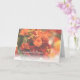 Wedding card with orange and red flowers in the background.