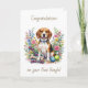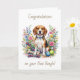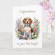 A sweet card to congratulate someone on their new Beagle. Whether you got a new puppy or adopted an older doggie, you now have a friend for life that you will cherish in your heart forever! The front has a sweet watercolor Beagle standing in flowers with dog toys.