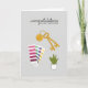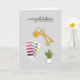 Light grey card with gold skeleton keys, paint samples and a snake plant and “congratulations on your new home” above them.