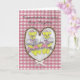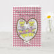 Congratulations on your twin daughters text with cute little teddy girls in white heart against pink gingham background