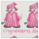 Design features an original marker illustration of a girl graduate in a pink cap and gown, holding a diploma. Great for celebrating a new grad!
