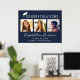 Modern dark navy blue graduation party poster with "CONGRATULATIONS" in white typography and an illustration of a white graduation cap on top, a 3 photo collage, her name in a stylish white script, and her class year and school name in simple white typography. The colors of the background and typography can be edited to your school colors by selecting "edit in the design tool."