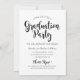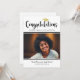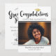 Celebrate your graduate with a modern black and white photo graduation party design featuring “Congratulations” in bold script and a gold grad cap accent. Personalise the name, photo, school, and class year. The back features matching “Graduation Party” script with clean party details and RSVP.