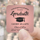 Add a personalised touch to college or high school graduation announcements and invitations with these custom pink and black square stickers / envelope seals. All text is simple to customise. Design features a rose gold faux metallic brushed stainless steel background, stylish modern typography, and hand written style script calligraphy. Makes an elegant addition to graduation party favours and decorations. Congratulations to the graduate!