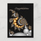 Elegant design for congratulations greetings. Silver, gold, and white beads with intricate detail spiral on a black background. Beveled silver and gold letters spell out "Congratulations".