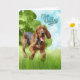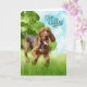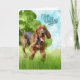 A cute running bloodhound dog lopes through the tall grasses of a summer field enjoying his playtime on this dog lover illustrated card to congratulate someone who is simply reBARKable!