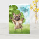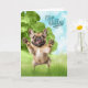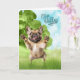 A cheerful fawn-colored French Bulldog with a floral headpiece that matches the peach and blue wildflowers blooming in the foreground of this sweet Mother's Day card for the Frenchie mom.