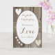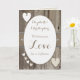 Personalise this rustic, dark *wood effect background, with white and beige hearts, Wedding Day card for the Bride and Groom, with their names.