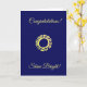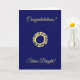 Swirling sun on navy blue Congratulations Greeting Card. Text can be personalised. Ideal for graduations, new house, promotions, new job, and any other event celebrating a new stage of life.