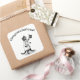 A sticker with Congratulations in hand-drawn style letters and a black and white drawing of a cat in a top coat and tails, tipping his top hat. Personalise it with you own greeting text and choice of lettering styles.