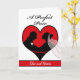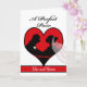 Congratulations on Valentine's Day wedding, custom front greeting card. Add the couple's names to the cover of this card for a personal greeting. Digital illustration of a couple in silhouette with the groom wearing a boutonniere and the bride with a transparent veil. Classic black, red, and white colour scheme. Art, image, and verse copyright © Shoaff Ballanger Studios.