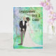 Congratulations card for a mixed marriage. The bride is black, and the groom is white. She is wearing a beautiful wedding gown and the groom is wearing a black and grey tux. The background is designer green. The words on the front are permanent, however, they can be changed by you on the inside. Thanks to Design Cuts for some of the elements in the design.