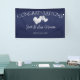 Congratulations White Hearts on Navy Elegant Wedding Banner designed for your Wedding Reception. The text includes: CONGRATULATIONS!, The Bride and Groom's Names and Wedding Date. To personalise, simply insert your text into our easy template, replacing the sample.