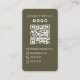 A simple design features a QR social media photo, a modern simple minimalist contemporary, a contact info phone email website, Facebook Instagram Pinterest Twitter, a fish fishing guide tour resort, a camping up north wildlife bass, a trendy stylish website connect pro, a basic clean digital scannable scan, a professional fisherman angler angling, a lake woods camp business