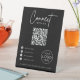 This ultra-modern black and white sign centralizes all your online connections with a stylish, high-contrast layout and an elegant script headline inviting interaction. A single, large, central QR code directs customers to a customized link, while four essential social media and website icons are clearly listed beneath it with corresponding handles. The design is completed by a dedicated space to showcase your company logo, creating a sophisticated and efficient hub for all your business's digital destinations.