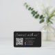 Make it easy for customers to find you online with a sleek black business card featuring your website QR code and social media icons. Customisable and professional.