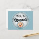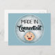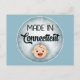 This funny postcard features a cute white baby face that says "Made In Connecticut" on a blue background. Perfect for new baby announcements or just for fun.