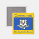 An authentic fine quality image of the flag of Connecticut set between the state name and nickname over a light flag-colour background.