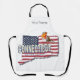 Connecticut, state in United States with map and bird design, vintage US flag, souvenir for holiday. Connecticut with retro design and map as USA souvenir for city and America! Lifestyle for Connecticut backpackers and American city trips.