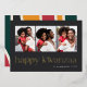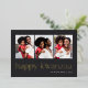 Share holiday greetings with these beautiful Kwanzaa photo cards featuring 3 vertical or portrait orientated photos aligned side by side. "Happy Kwanzaa" appears beneath in connected gold foil lower case serif lettering accented with stars. Personalise with your family name and the year.