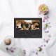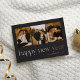 Share holiday greetings with these beautiful New Year photo cards featuring 3 vertical or portrait orientated photos aligned side by side. "Happy New Year" appears beneath in rose gold foil connected lower case serif lettering accented with stars. Personalise with your family name and the year.