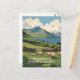 A charming postcard of Connemara, featuring grazing sheep on lush green hills, with rolling landscapes stretching beneath a wide, open sky.