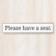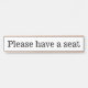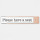 This respectable, dapper design features the message "Please have a seat". This could be used in a waiting lounge to inform visitors or patients that they will be served shortly, and that they should have a seat in the meanwhile.