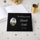 This elegant funeral or memorial guestbook features the message "We will always remember", and the personalised name and birth/death dates of the individual who has passed on. It also features a custom photo. It could be used to record fond memories of somebody who has recently passed away.