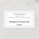 This plain business card design features a professional’s name, an organisation name, a professional position title, and contact details that can be personalised. It also features a double-line border. Business cards like these might be used by a professional such as a business law expert or a law expert.