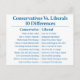 10 Differences between Conservatives and Liberals. In reality there are thousands, but here are ten that we thought were the funniest.