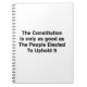 A spiral bound NOTEBOOK with the words "The Constitution is only as good as The People Elected To Uphold It" printed on the front cover.