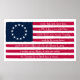 Stylised Betsy Ross flag graphic with the preamble of the United States Constitution displayed on the red stripes.