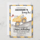 Celebrate in high gear with this fun and bold construction-themed birthday invitation. Featuring a bright yellow dump truck, playful dirt and tool graphics, and cheerful typography, this “Dump Everything! I’m Four” design is perfect for little builders who love trucks and digging up fun.